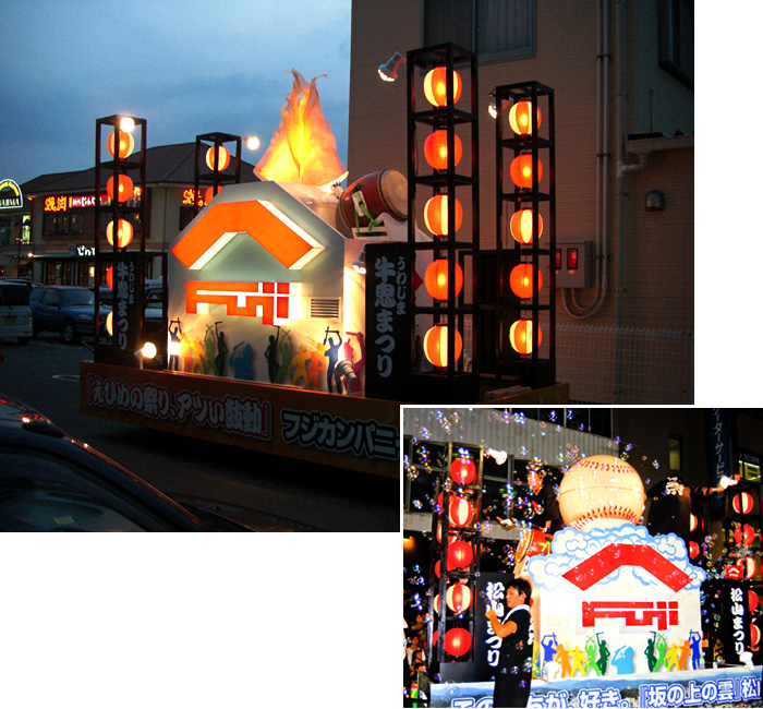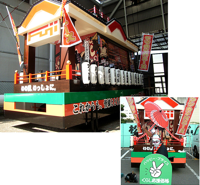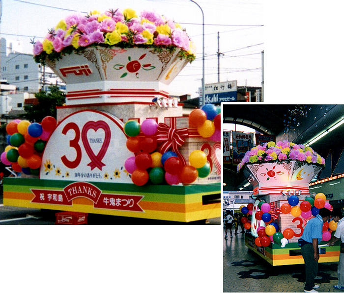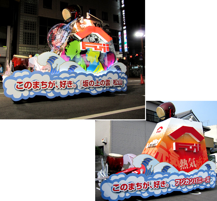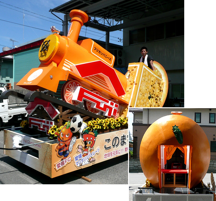 四国県内の「松山まつり」「川之江紙祭り」「うわじま牛鬼祭り・和霊大祭」 「今治・おんまく」「愛南町夏まつり」「伊予市住吉まつり」など、多数の山車を手がけております。