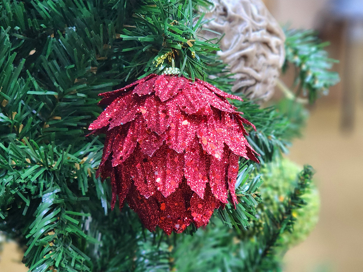 こちらは新作の赤い松ぼっくり^^キラキラで可愛らしいです♪