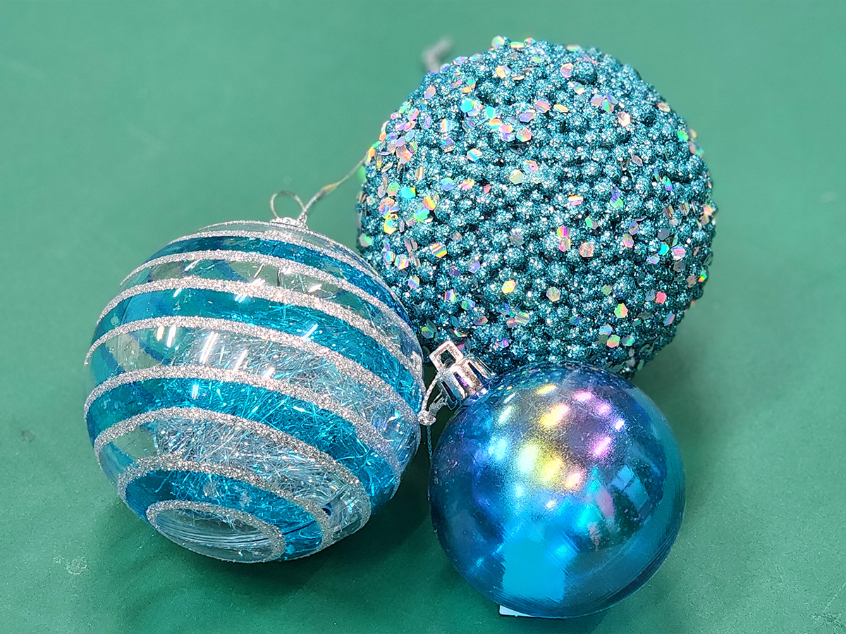 サイズや素材の様々なオーナメントを見ているだけで気分が高まります。
