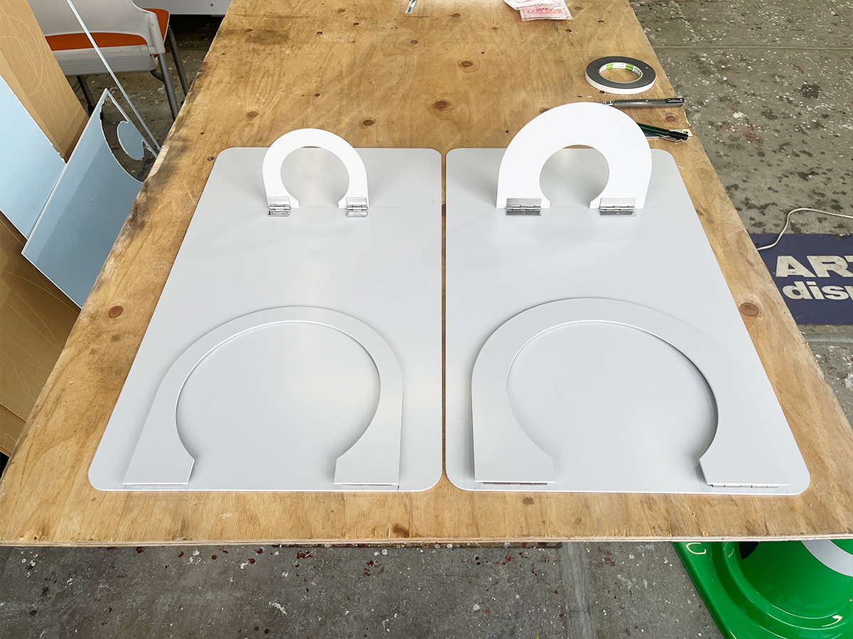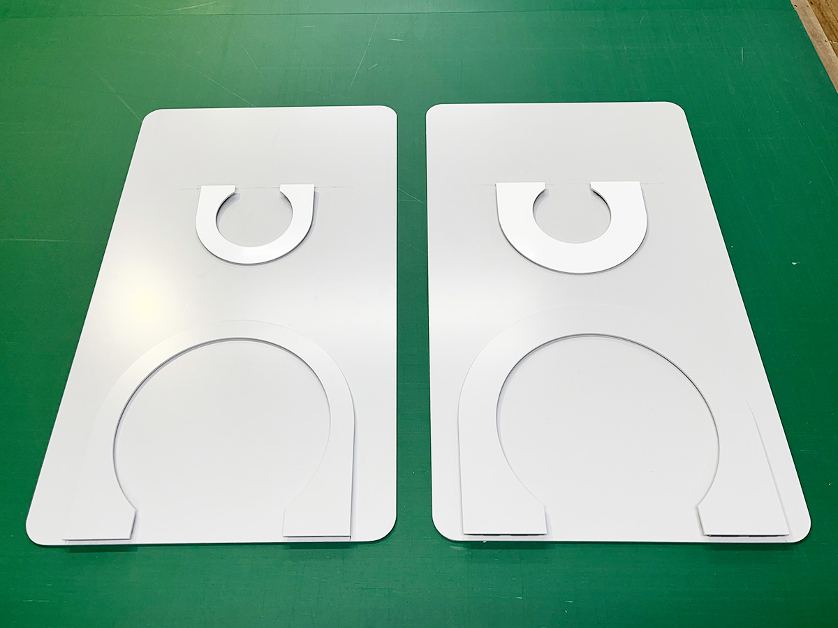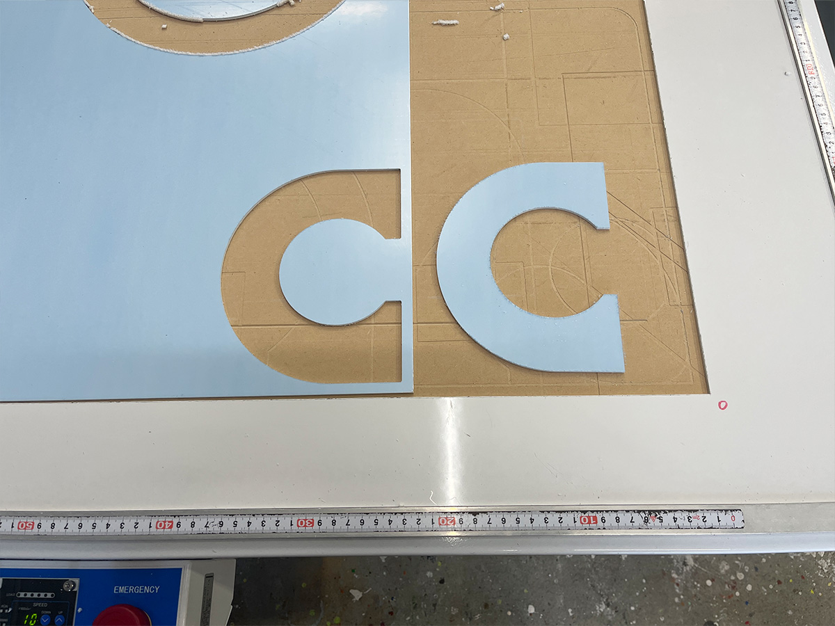 使用する部材は、表示板面・パーツ共にアルミ複合板3.0ミリをルーターにて切り出し加工して制作していきます。
