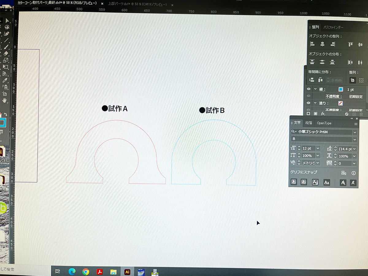 試作品に比べ、上下パーツの幅が揃っており見た目の違和感は解消されました。