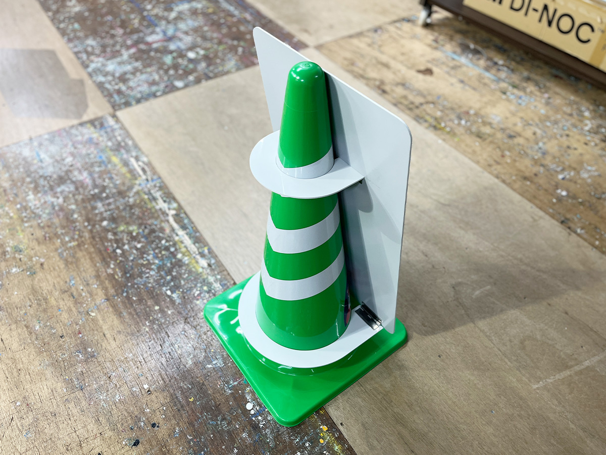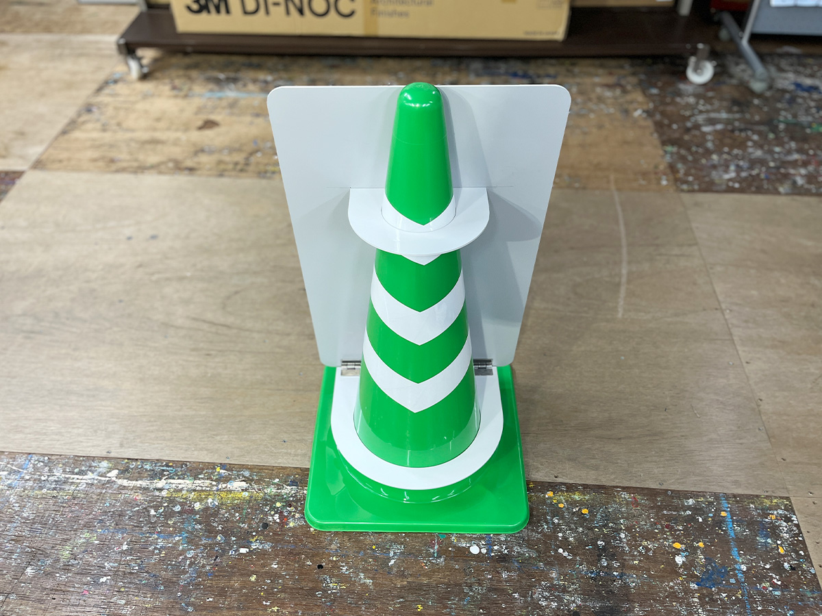使用しないときはコンパクトに折りたためるカラーコーンサインが出来上がりました。