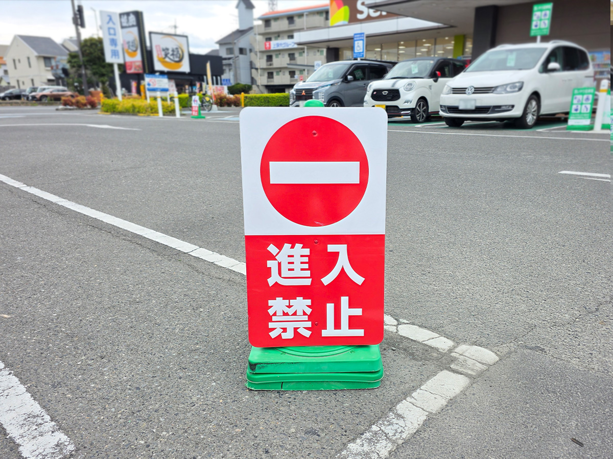 駐車場内に注意喚起の案内等を数種類設置しております。